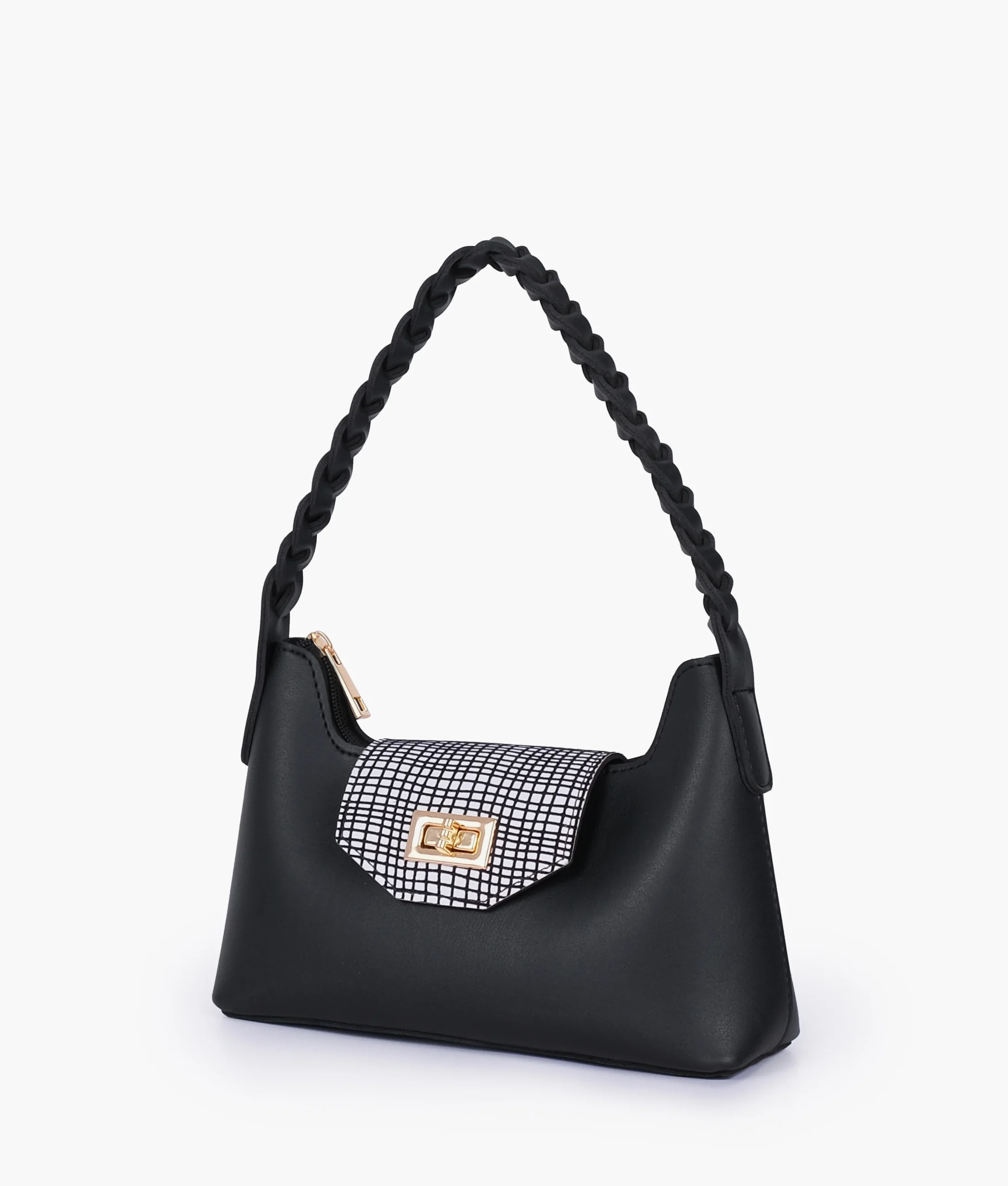 Black and White Purse with Braided Strap – Bold Contrast, Timeless Appeal