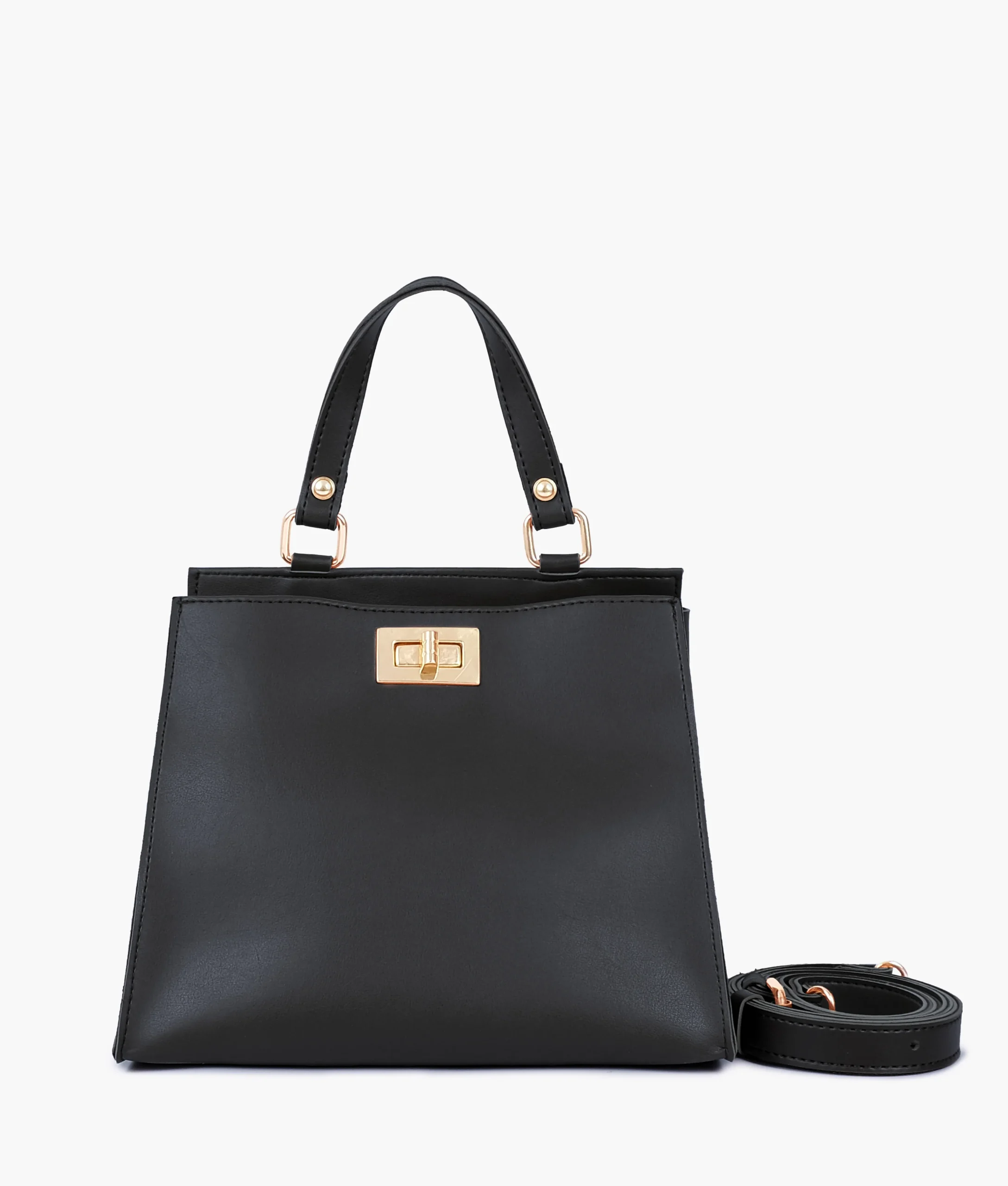 Black Front Lock Top Handle Mini Bag: Space-Efficient Yet Roomy