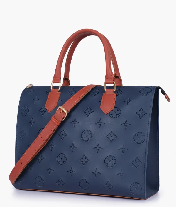The Blue and Rust On-the-Go Handbag is a smart blend of color, style, and function.