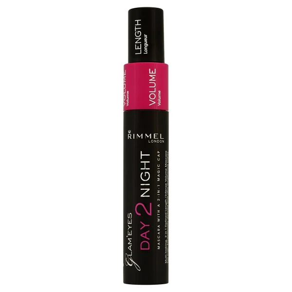Achieve stunning lashes with the Day 2 Night Mascara by Rimmel London, a versatile mascara that offers two distinct looks with a single product.