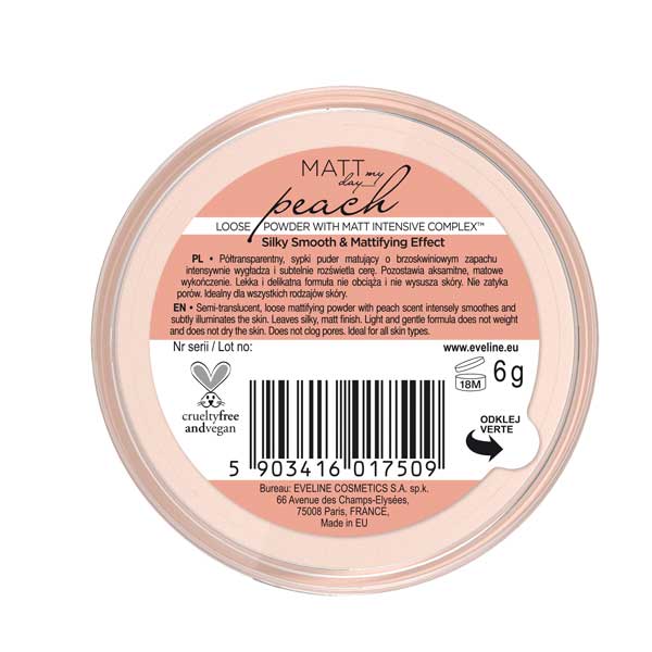 Enhance your makeup routine with Eveline Peach Matt Loose Powder and enjoy a smooth, matte complexion every day.