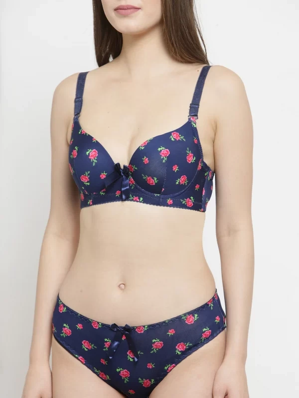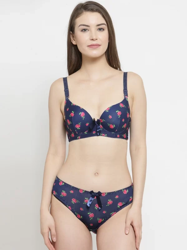Key Features of PrettyCat Blue Printed Single Light Padded Bra Set